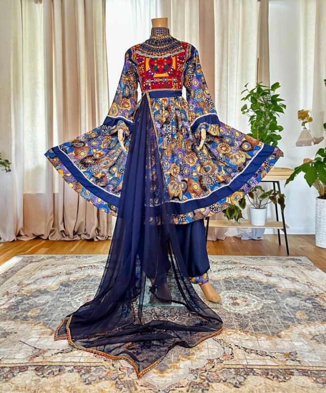 Styling the Persian Blue Banaras Afghan Dress: Tips for a Complete Look