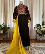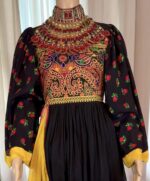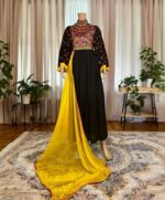 Product Name: Long Black Dress with Golnegar Sleeves and Embroidered Yakhun